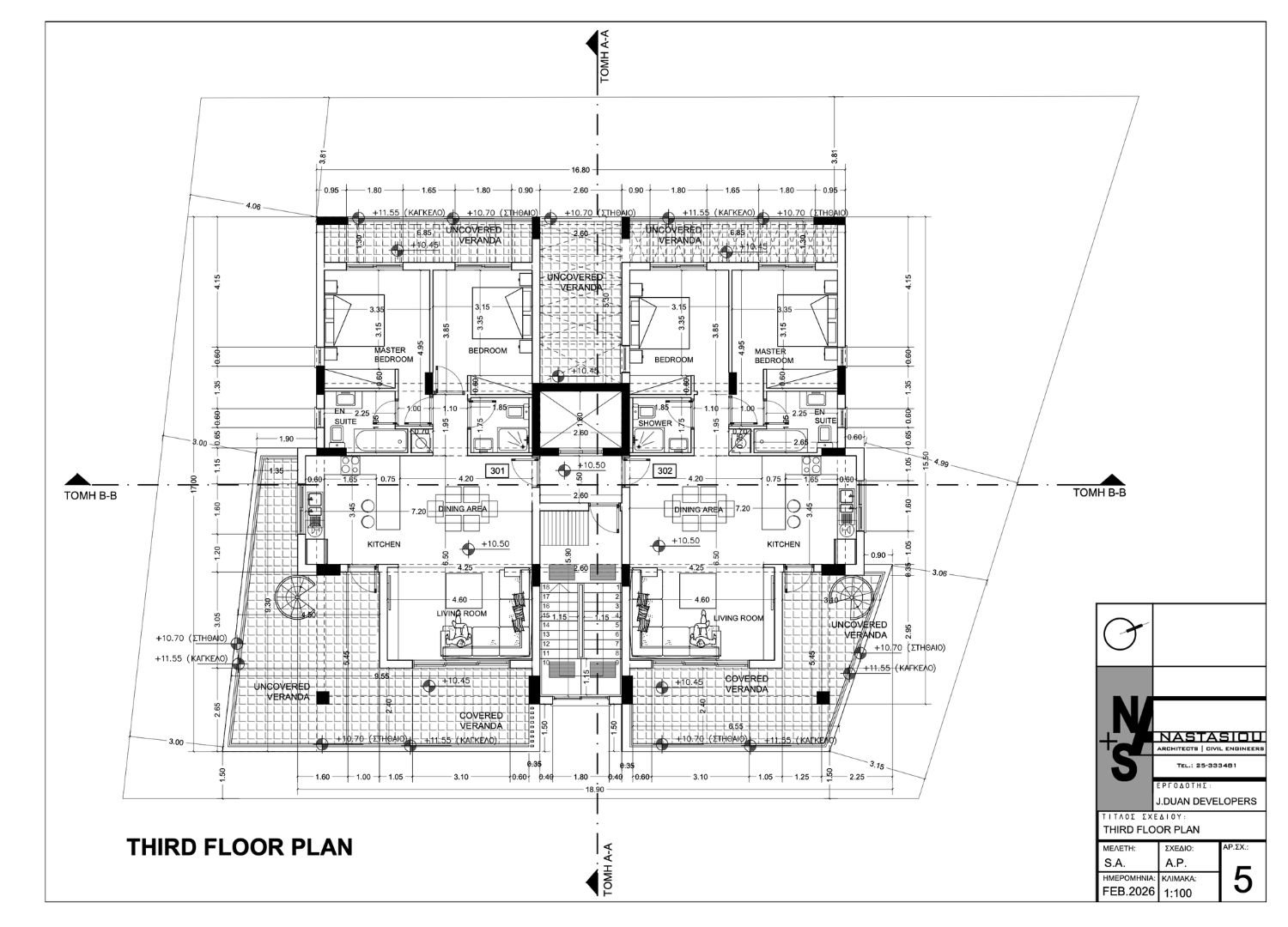 The third floor of Anna Residence V comprises two well-appointed two-bedroom apartments arranged around a central core, each with generous covered and uncovered verandas that extend the living space outdoors. Designed for comfortable modern living, the layouts combine open-plan kitchen, dining and living areas with a private master bedroom suite, creating bright, practical homes with a strong connection to outdoor space.